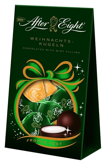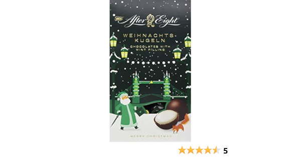 Get it as soon as Fri May 21. AFTER EIGHT Weihnachtskugel 85g Die AFTER EIGHT Weihnachtskugeln aus leckerer Zartbitterschokolade und feiner Minzcremefüllung sind einzeln eingewickelt in einer edlen goldfarbenen und AFTER EIGHT typisch grünen Verpackung. Other cookies which increase the comfort when using this website are used for direct advertising or to facilitate interaction with other websites and social networks are only set with your consent.