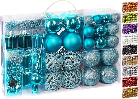 Brubaker 101 Teiliges Set Weihnachtskugeln Mit Baumspitze Blau Christbaumschmuck Amazon De Kuche Haushalt