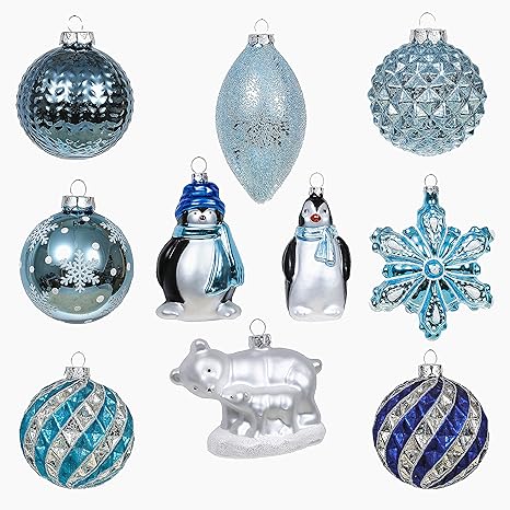Valery Madelyn 10 Stucke Glas Weihnachtskugeln Set 8 12cm Blau Silber Glas Christbaumkugeln Set Mit Aufhanger Weihnachtsbaumschmuck Weihnachtsdeko Winterland Thema Amazon De Kuche Haushalt